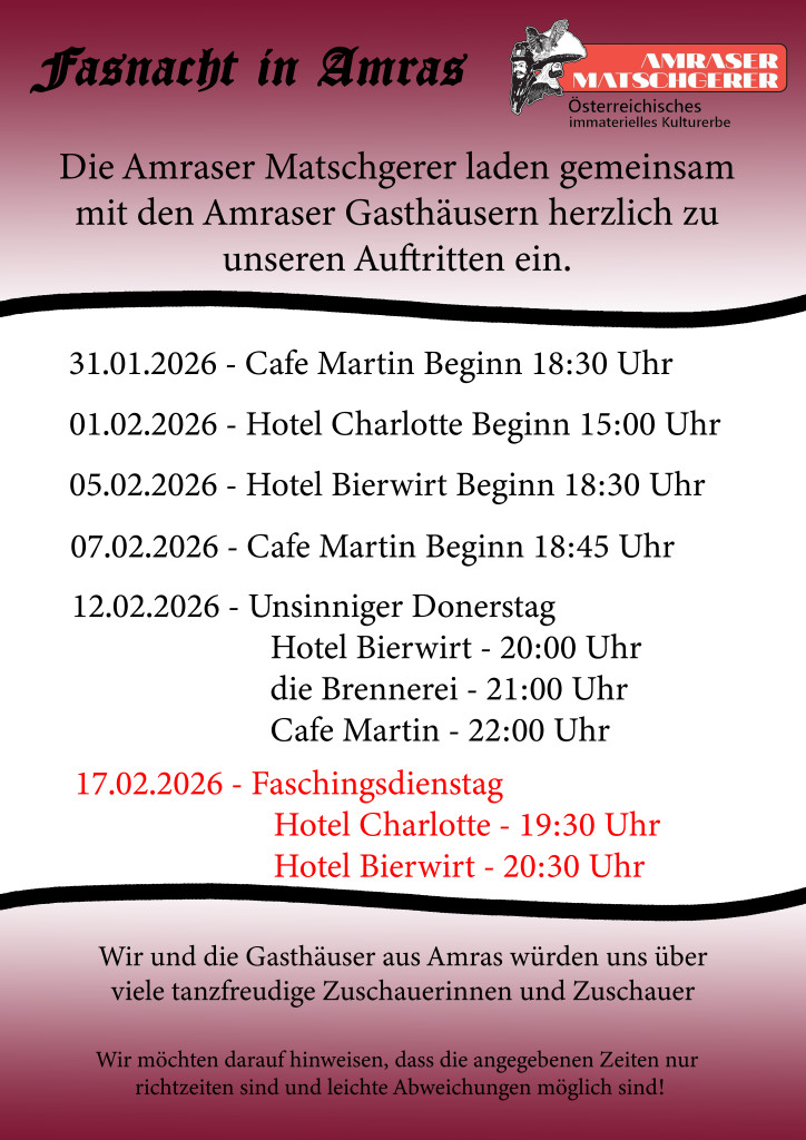 Der jährlich stattfindende Fastnachtsbrauch der Amraser Matschgerer findet Quellen zufolge seinen Ursprung im 17. Jahrhundert. ... Lies mehr